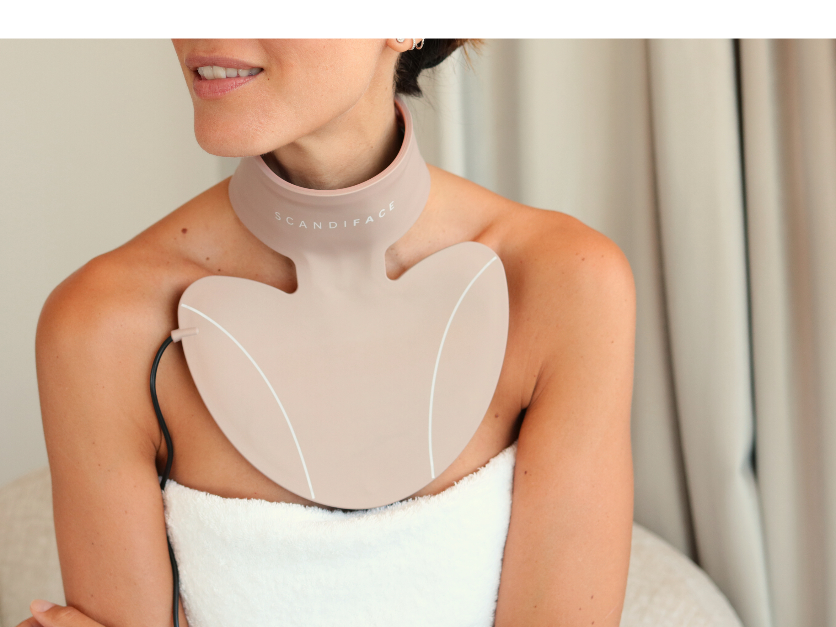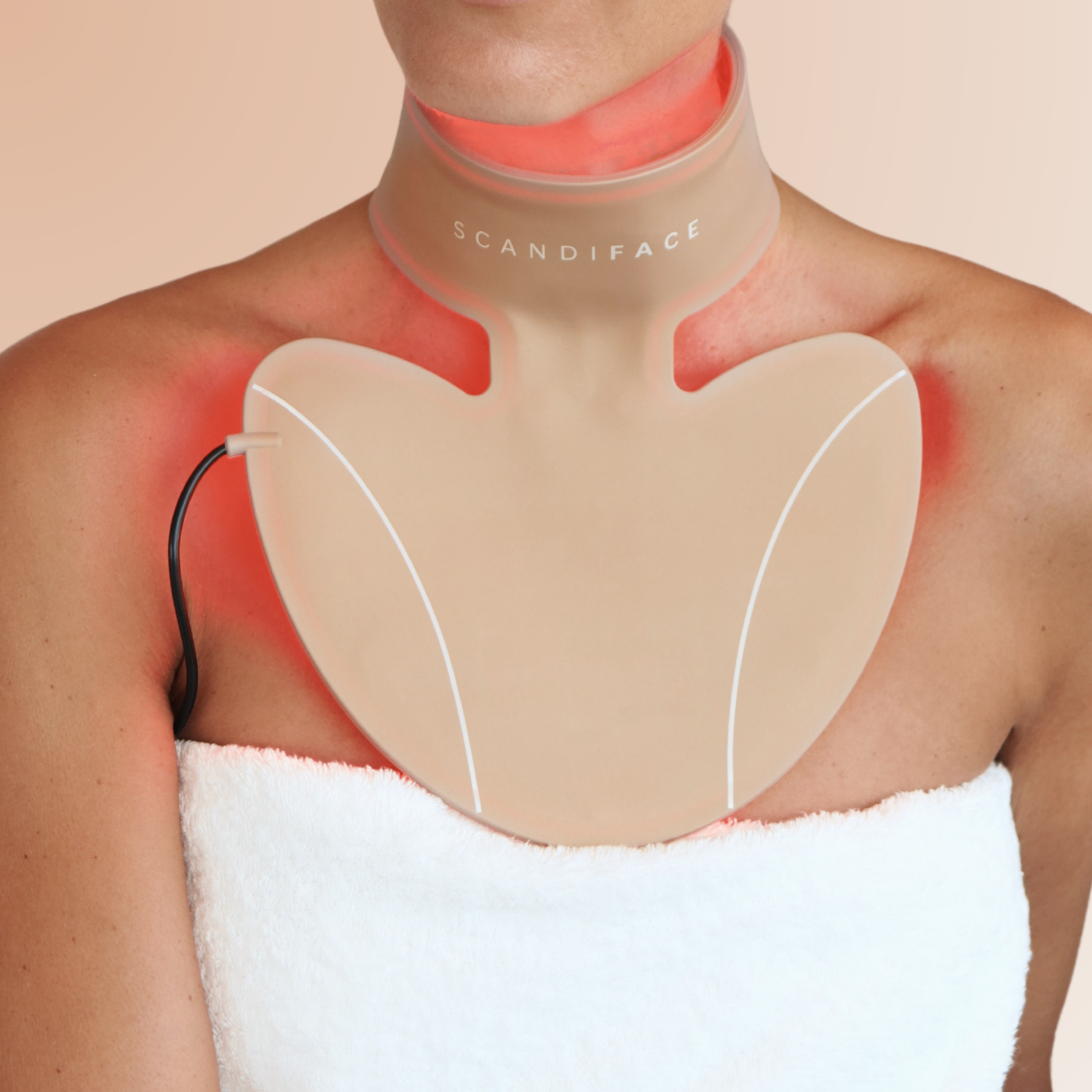 Rot und NIR glätten die Halsfalten und die feinen Linien im Dekolleté. Auch die Pigmentierung wird gedämpft. (Ergebnisse sind nach 14–30 Tagen sichtbar).